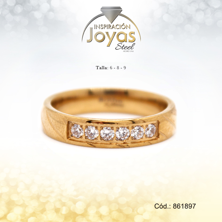 Anillo – Acero – Cintillo – Dorado – Repuje/Circon Blanco T: 9 – 86189790