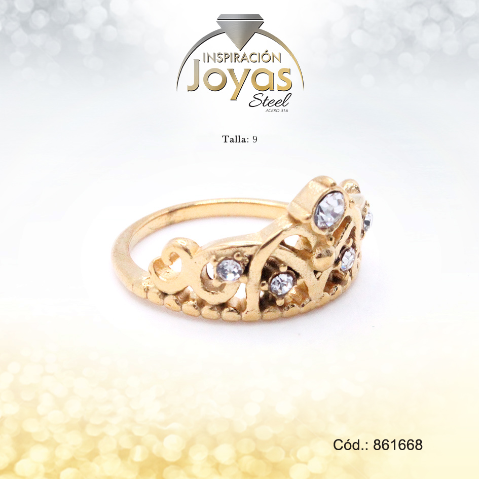 Anillo Acero Corona Circon Dorado Blanco Talla: 9 – 86166890