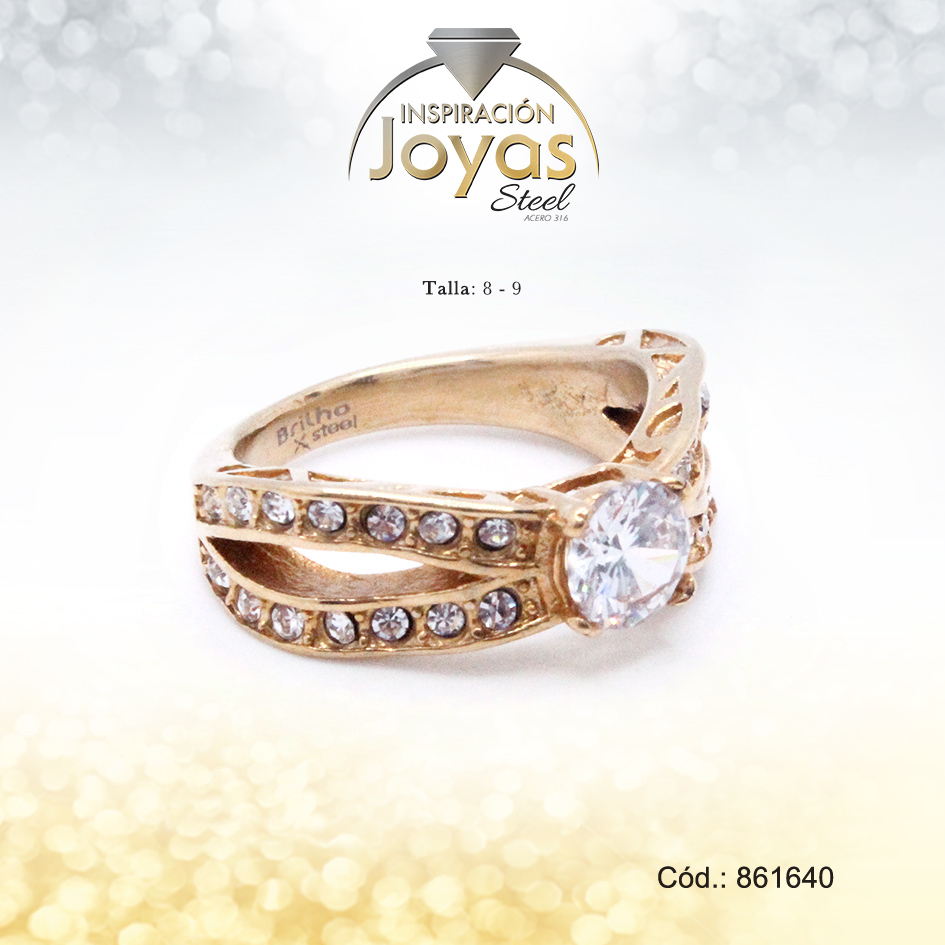 Anillo – Acero – Doble – Solitario – Dorado – Circon Blanco T: 8 – 86164080