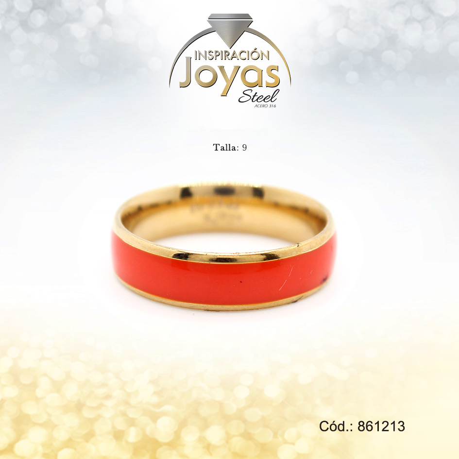 Anillo Acero Dorado Esmalte Naranja – 861213