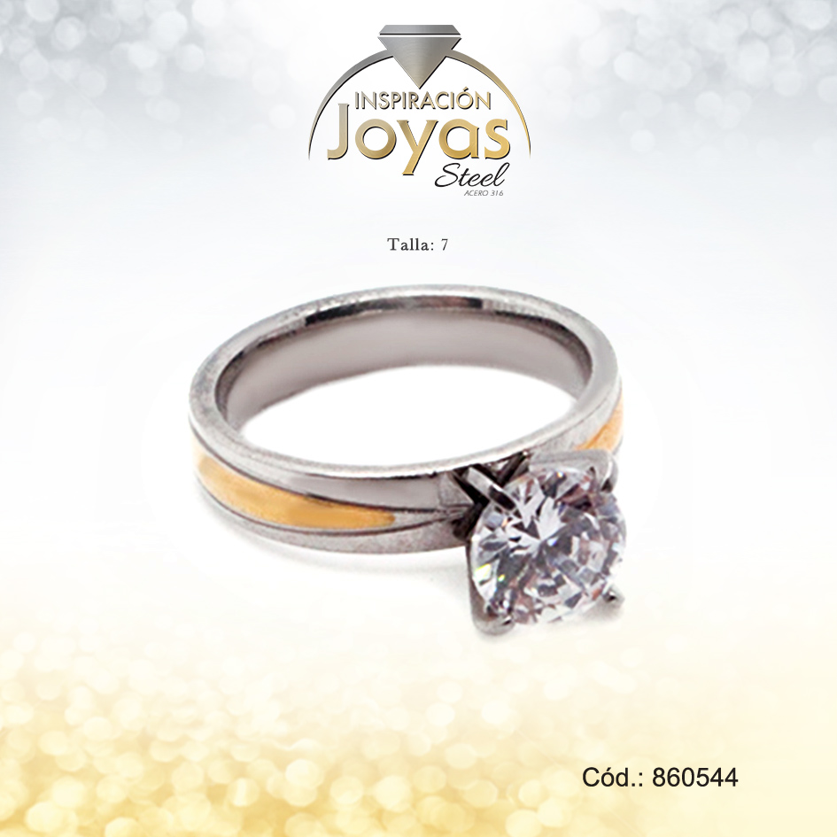Anillo – Acero – Dos Tonos – Solitario – Repuje/Circon Blanco – T: 7 – 86054470