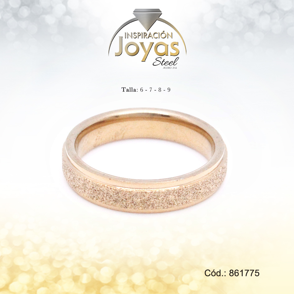 Anillo – Acero – Forma De Aro De Matrimonio – Dorado – Escarchado/Repuje T: 9 – 86177590
