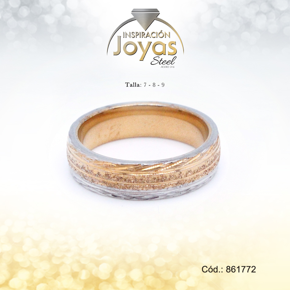 Anillo – Acero – Forma De Aro De Matrimonio – Dos Tonos – Escarchado/Repuje T: 7 – 86177270