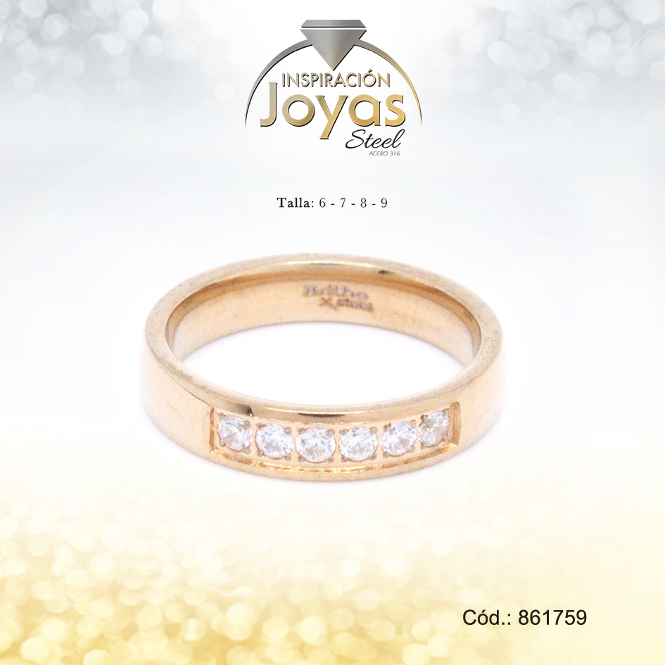 Anillo – Acero – Forma De Cintillo – Dorado – Circon Blanco T: 9 – 86175990