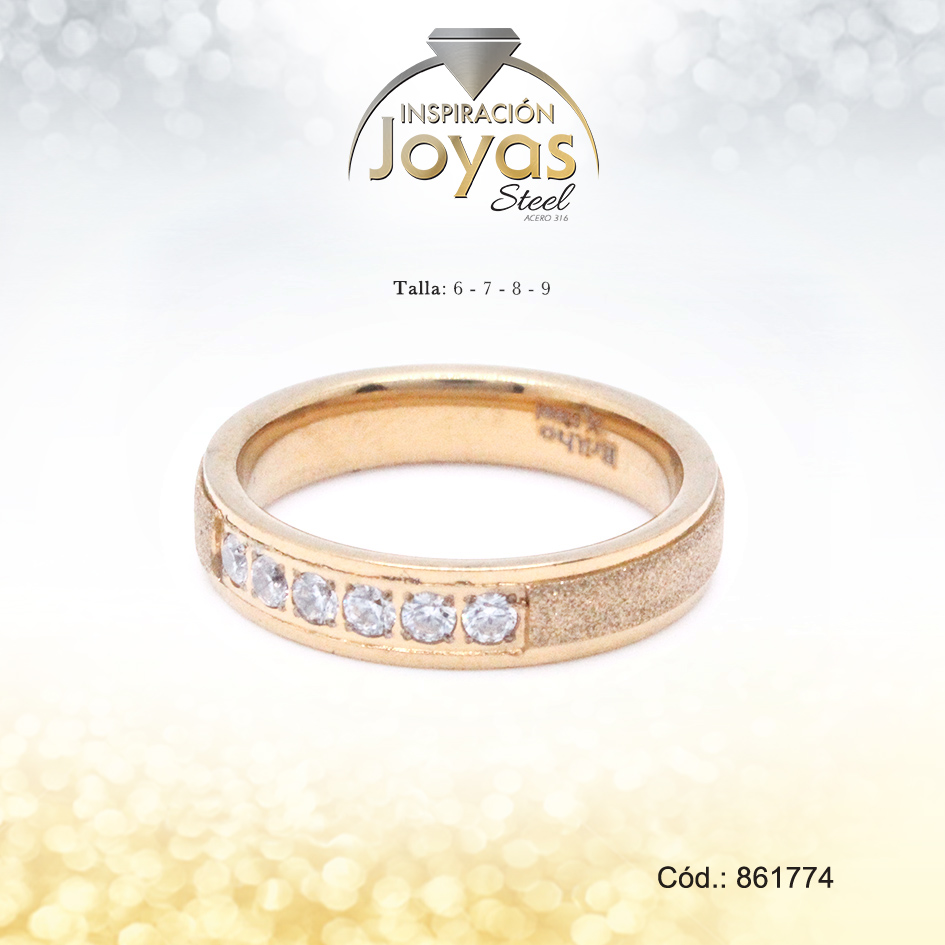 Anillo – Acero – Forma De Cintillo – Dorado – Escarchado/Circon Blanco T: 6 – 86177460