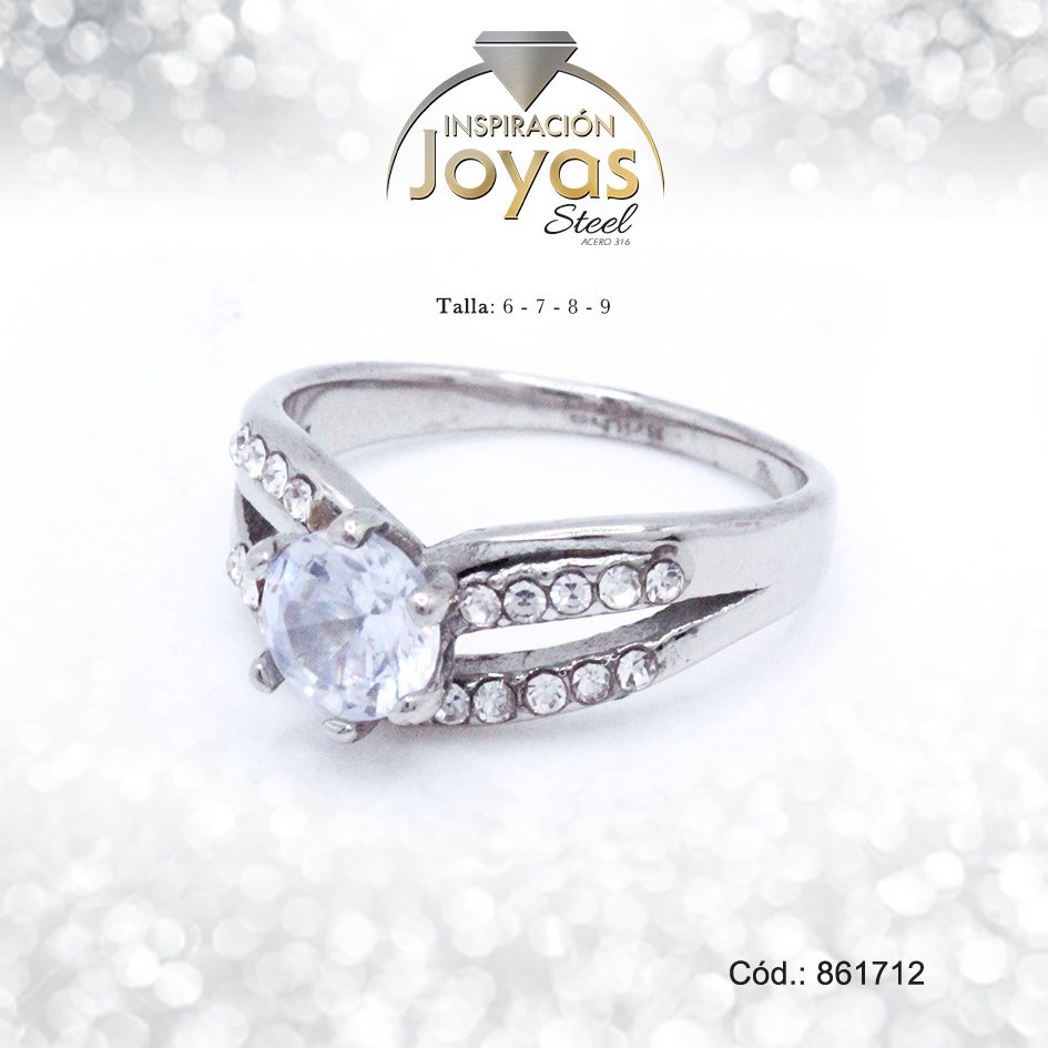 Anillo – Acero – Forma De Solitario – Plateado – Circon Blanco T: 9 – 86171290