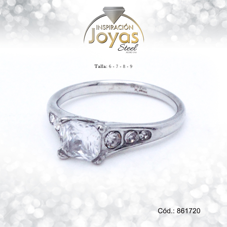 Anillo – Acero – Forma De Solitario – Plateado – Circon Blanco T: 9 – 86172090