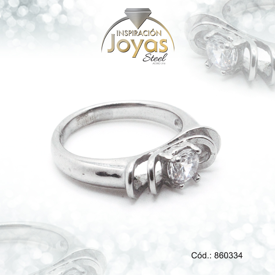 Anillo – Acero – Plateado – Solitario – Circon Blanco – T: 6 – 86033460