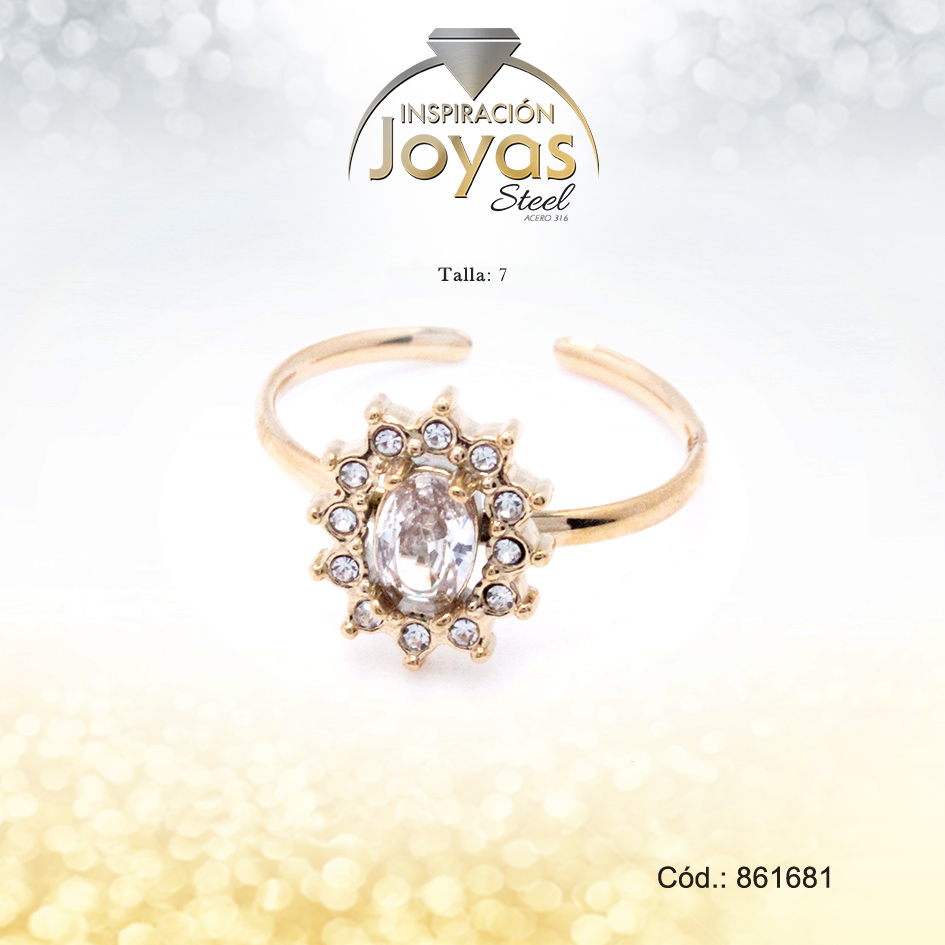 Anillo Acero Sol Ajustable/Circon Dorado Blanco Talla: 7 – 86168170