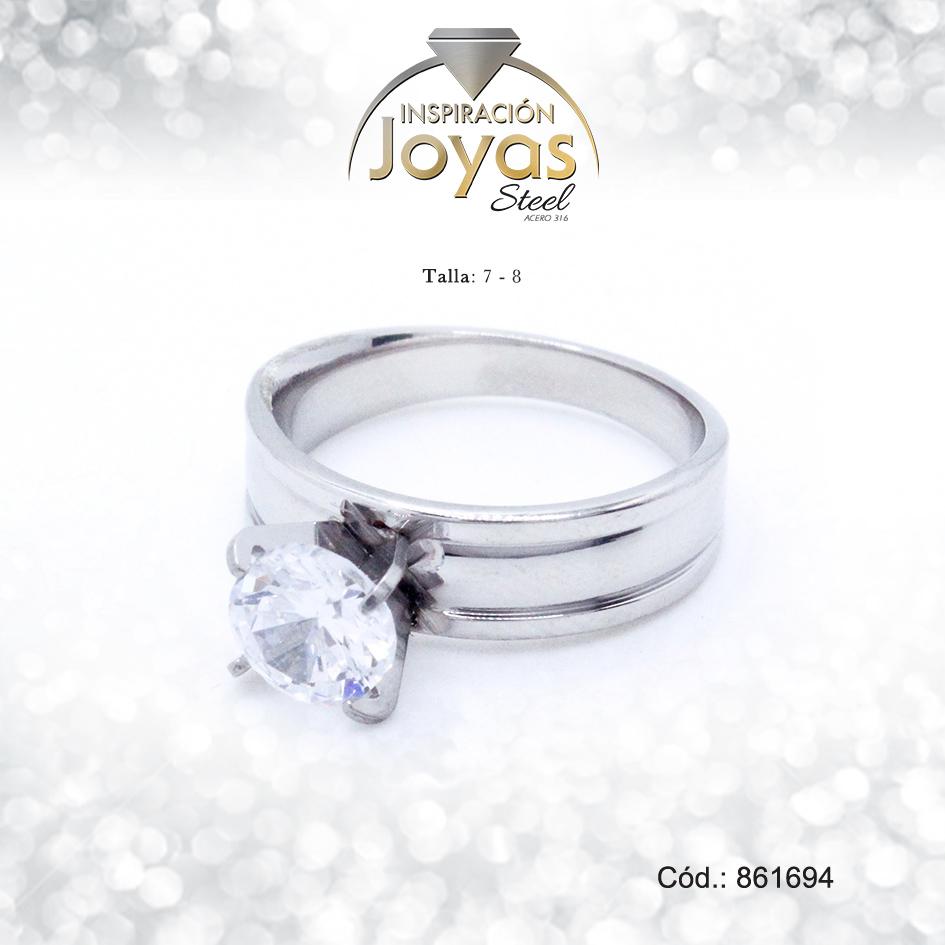 Anillo Acero Solitario Repuje/Circon Plateado Blanco Talla: 7 – 86169470