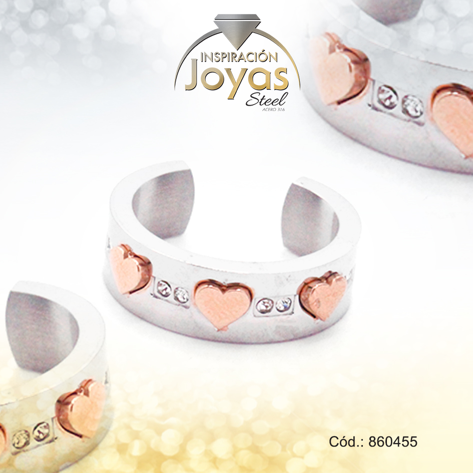 Anillo de Acero Ajustable Circón 2 Tonos Corazón Talla 9 – 860455