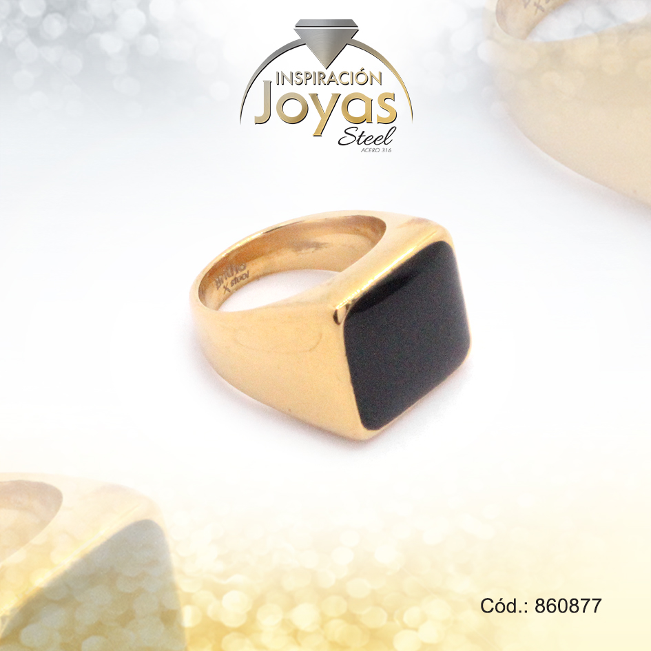 Anillo de Acero Caballero Piedra Dorado Cuadrado NegroTalla 3 – 860877