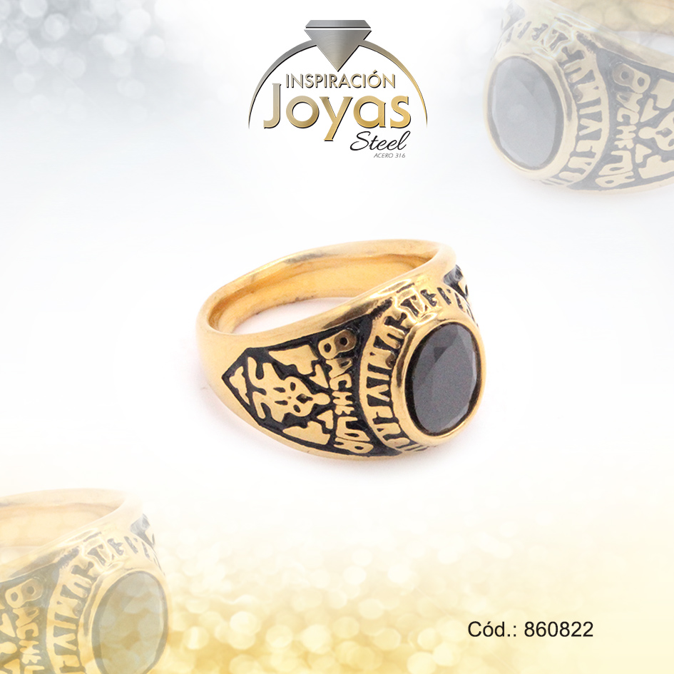 Anillo de Acero Graduacion Piedra Dorado Bachiller NegroTalla 10 – 860822