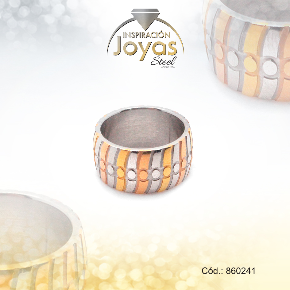 Anillo de Acero Matrimonio 3 Tonos Línea Talla 6 – 860241