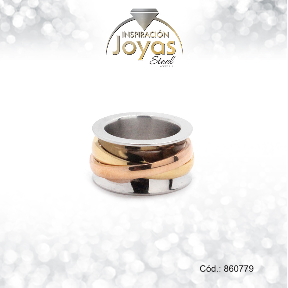 Anillo de Acero Matrimonio 3 Tonos Línea Talla 8 – 860779