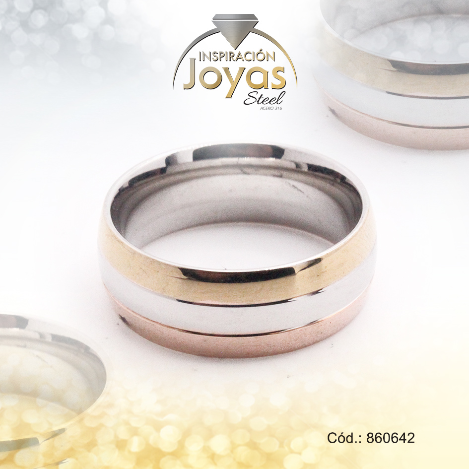 Anillo de Acero Matrimonio 3 Tonos Línea Talla 9 – 860642