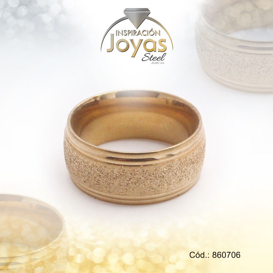Anillo de Acero Matrimonio Dorado Escarchado Talla 9 – 860706