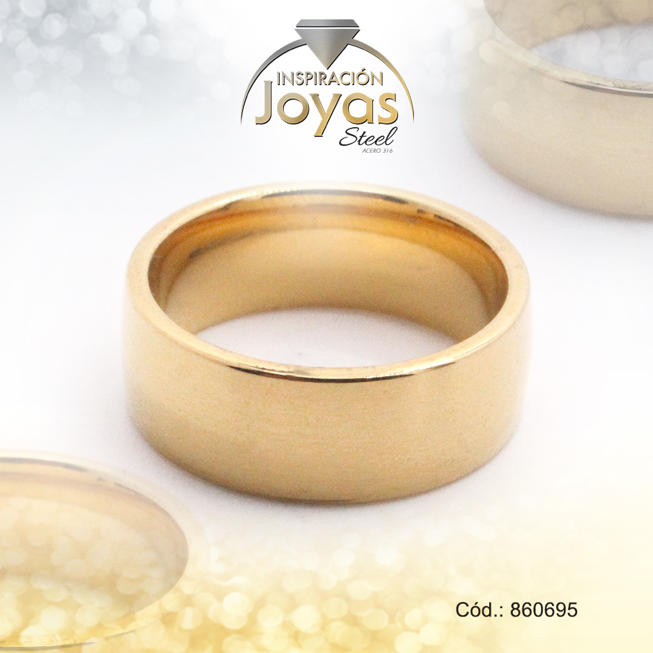 Anillo de Acero Matrimonio Dorado Pulido Talla 6 – 860695