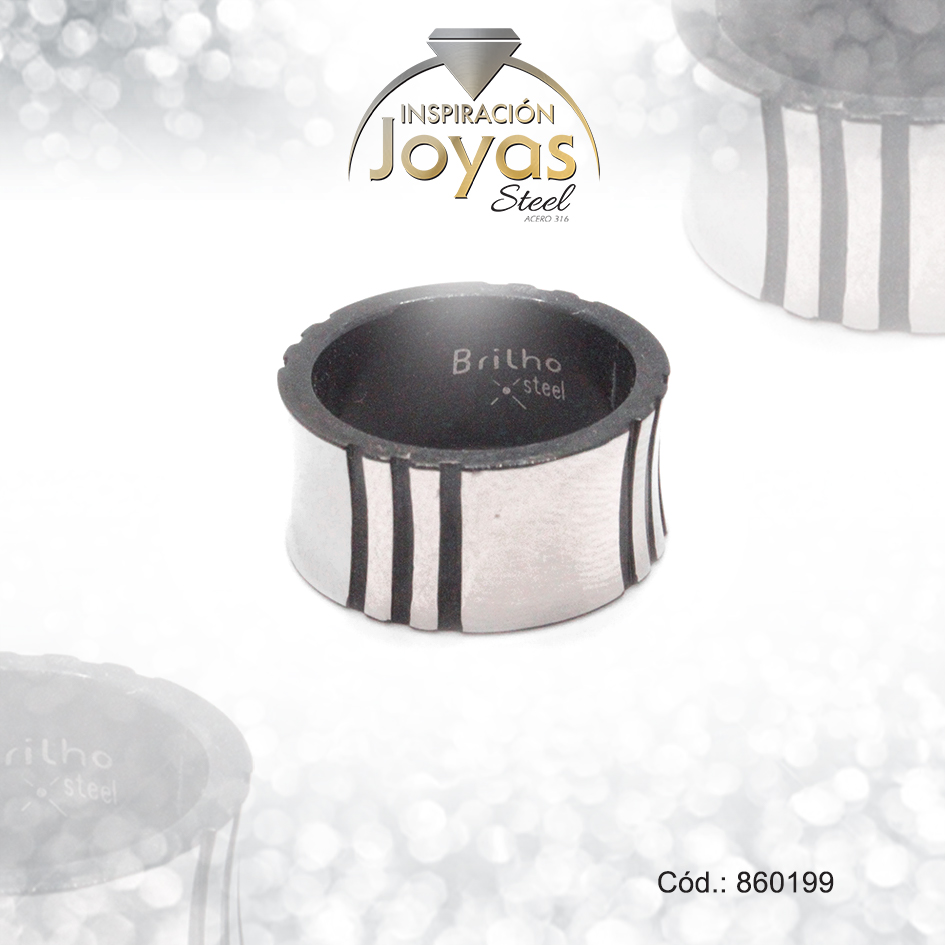 Anillo de Acero Matrimonio Esmalte Plateado Línea Negro Talla 6 – 860199