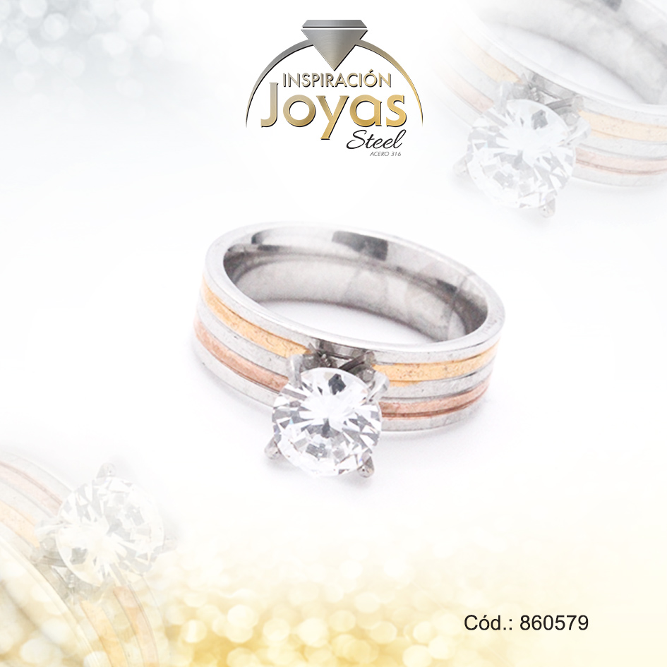Anillo de Acero Solitario Circón 2 Tonos Círculo Talla 7 – 860579