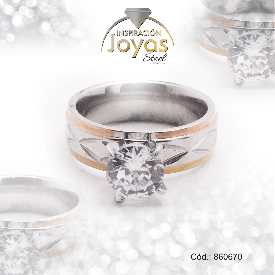 Anillo de Acero Solitario Circón 2 Tonos Círculo Talla 7 – 860670