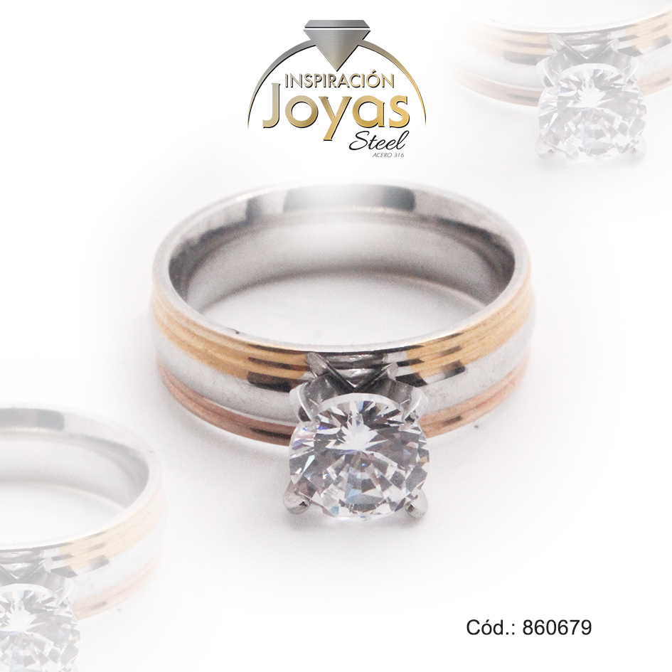 Anillo de Acero Solitario Circón 2 Tonos Círculo Talla 9 – 860679
