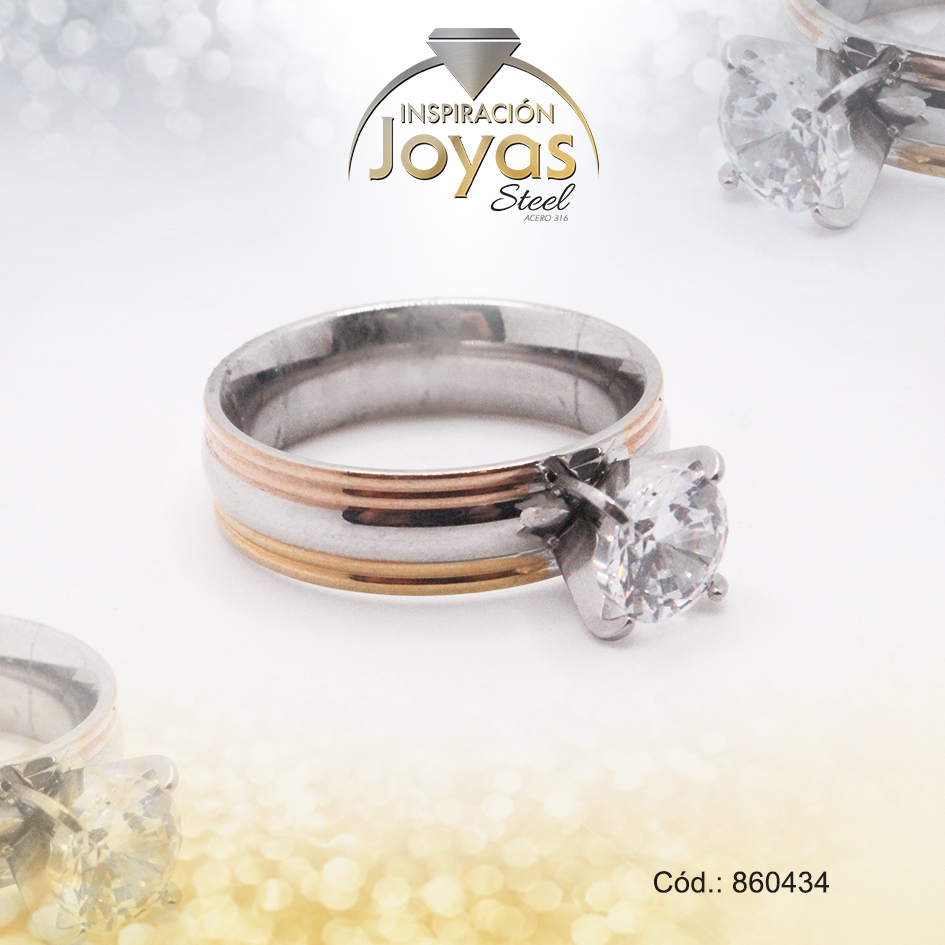 Anillo de Acero Solitario Circón 3 Tonos Círculo Talla 8 – 860434