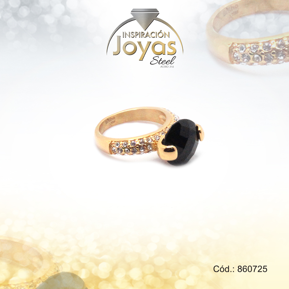 Anillo de Acero Solitario Circón Dorado Círculo Negro Talla 7 – 860725