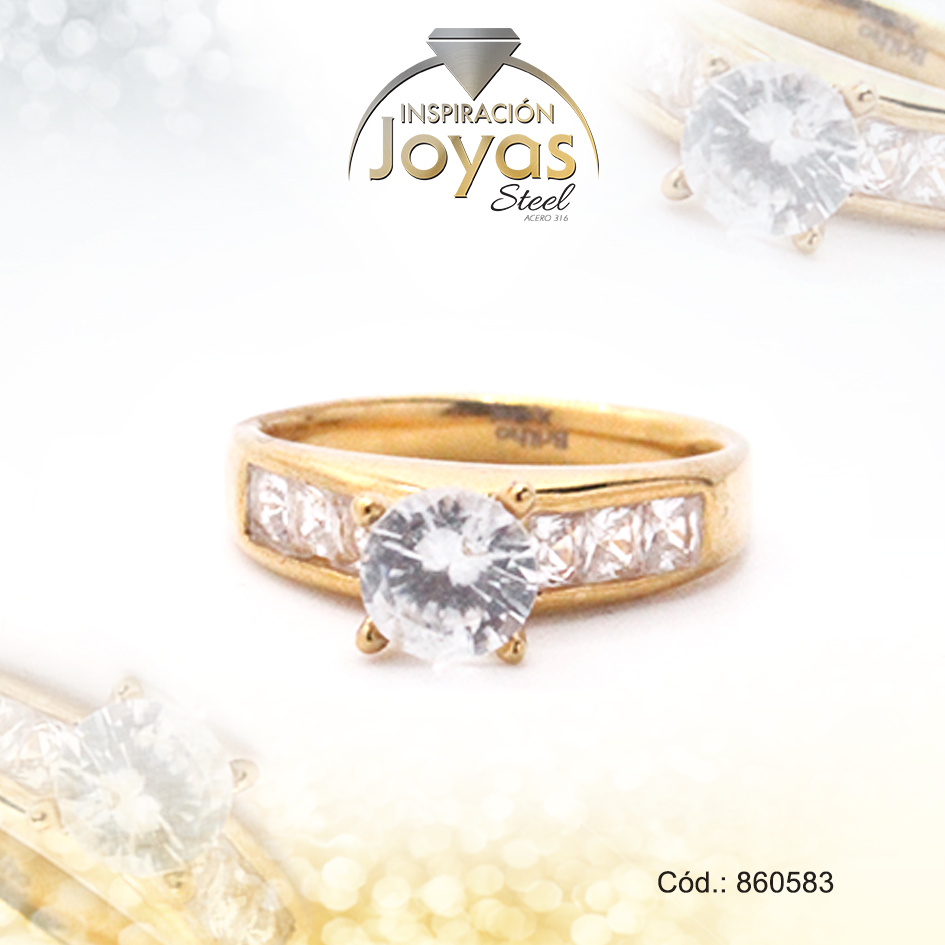 Anillo de Acero Solitario Circón Dorado Círculo Talla 6 – 860583