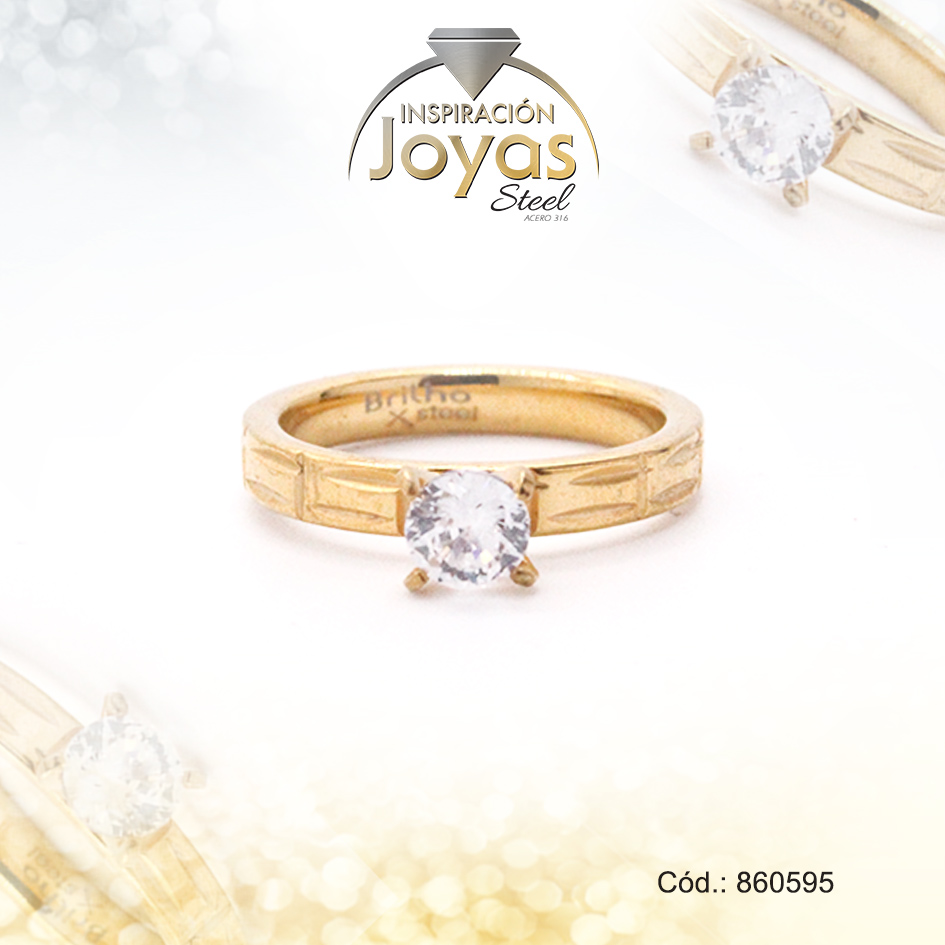 Anillo de Acero Solitario Circón Dorado Círculo Talla 6 – 860595