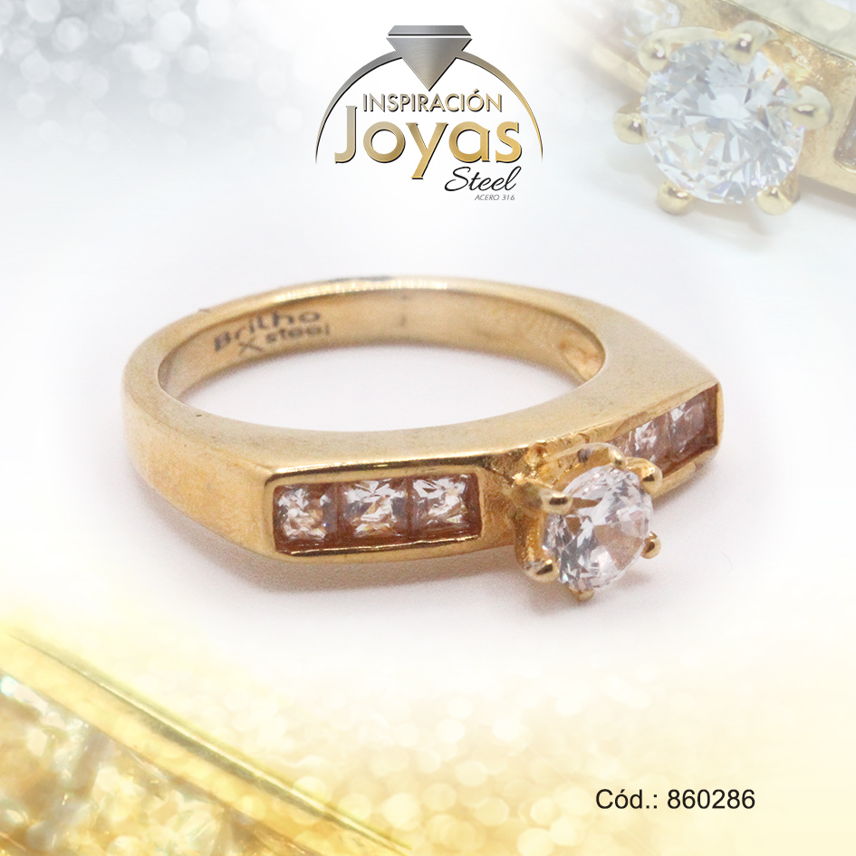 Anillo de Acero Solitario Circón Dorado Círculo Talla 9 – 860286