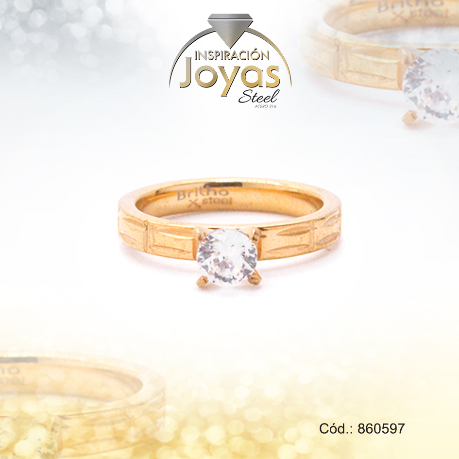 Anillo de Acero Solitario Circón Dorado Círculo Talla 9 – 860597