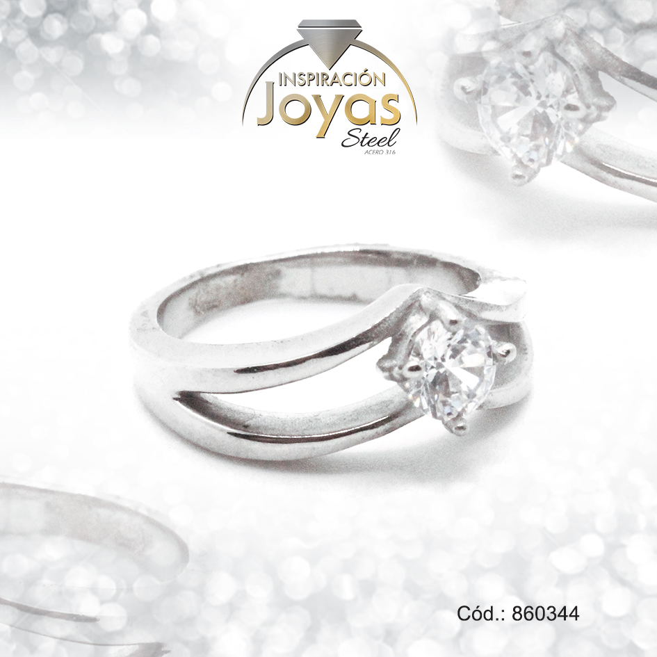 Anillo de Acero Solitario Circón Plateado Círculo Talla 5 – 860344
