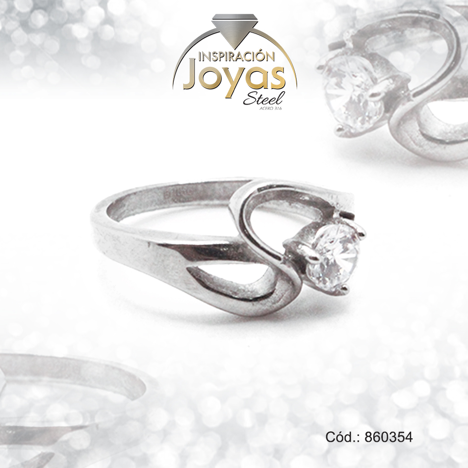 Anillo de Acero Solitario Circón Plateado Círculo Talla 5 – 860354