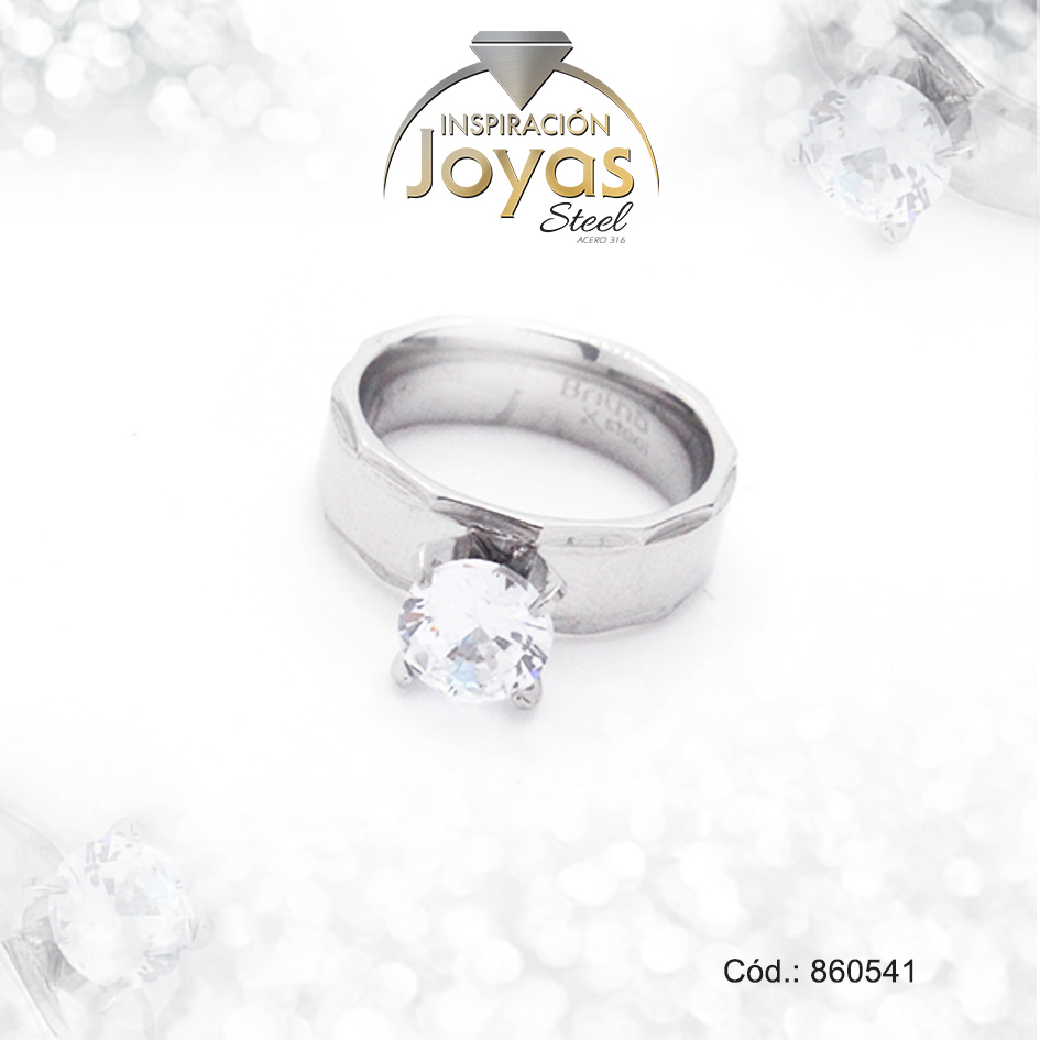 Anillo de Acero Solitario Circón Plateado Círculo Talla 6 – 860541