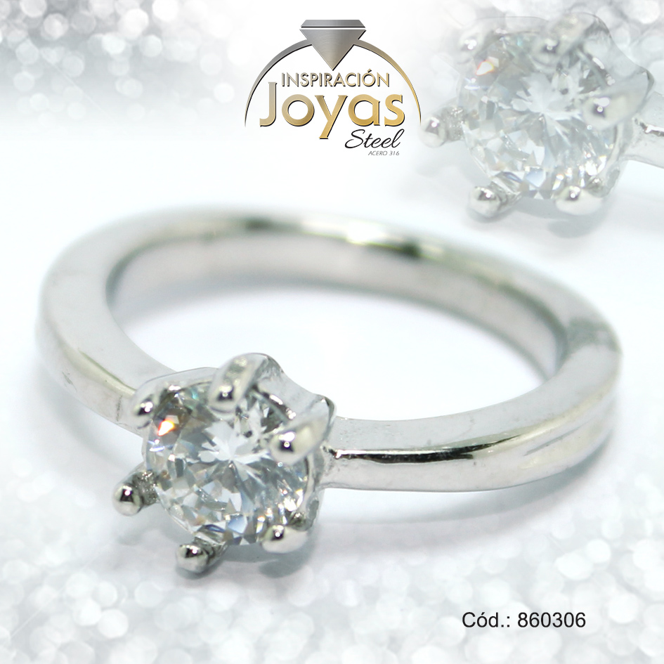Anillo de Acero Solitario Circón Plateado Círculo Talla 7 – 860306
