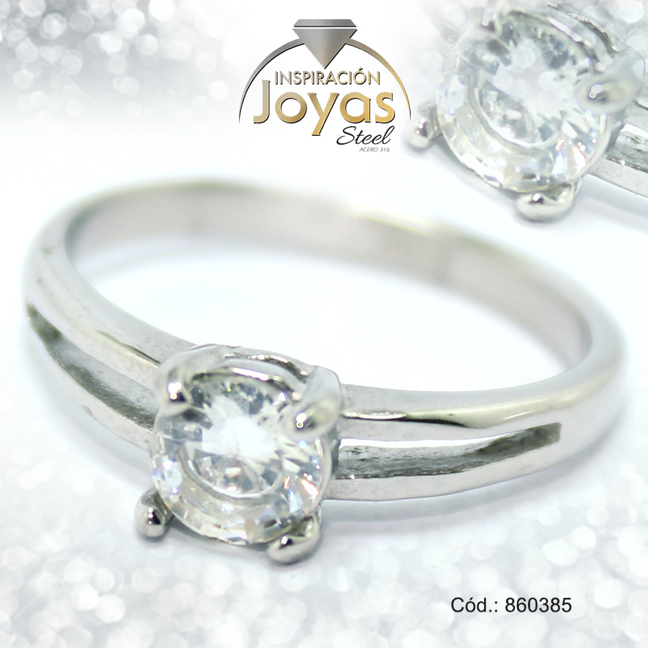 Anillo de Acero Solitario Circón Plateado Círculo Talla 7 – 860385
