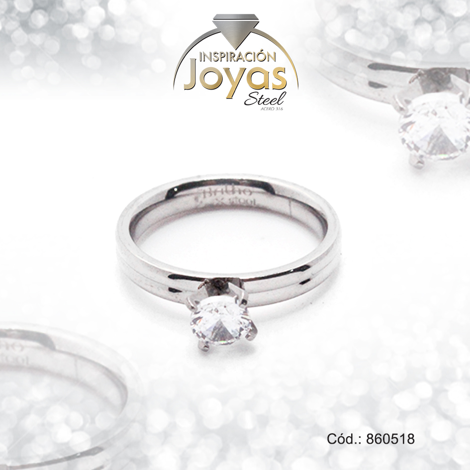 Anillo de Acero Solitario Circón Plateado Círculo Talla 7 – 860518