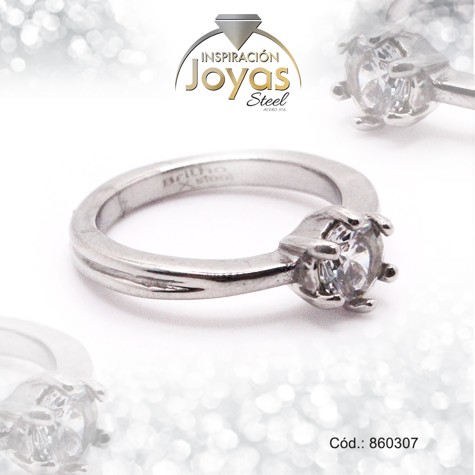 Anillo de Acero Solitario Circón Plateado Círculo Talla 8 – 860307