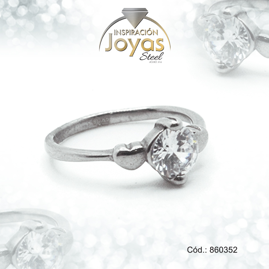 Anillo de Acero Solitario Circón Plateado Círculo Talla 8 – 860352