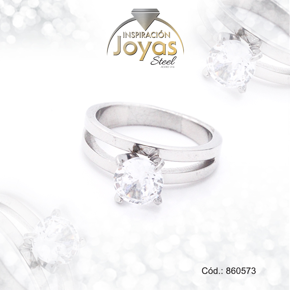 Anillo de Acero Solitario Circón Plateado Círculo Talla 8 – 860573
