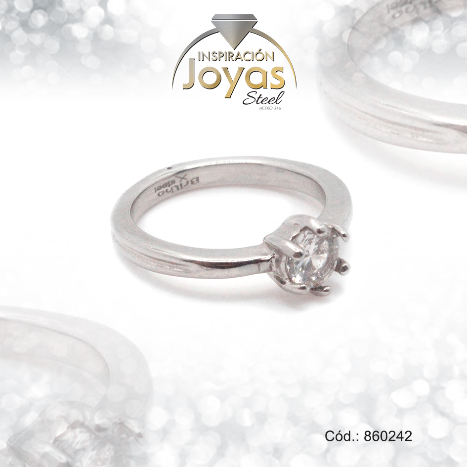 Anillo de Acero Solitario Circón Plateado Círculo Talla 9 – 860242