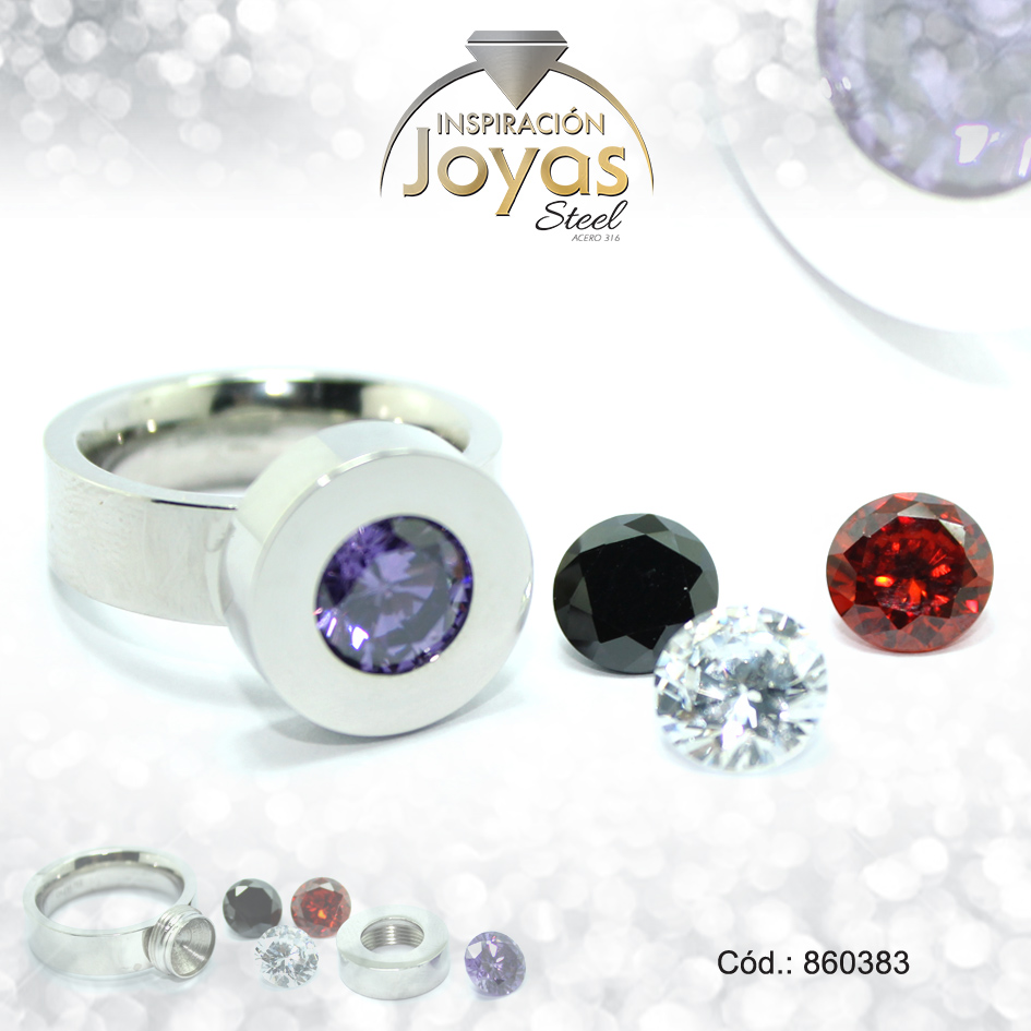 Anillo de Acero Solitario Circón Plateado Intercambiable Talla 9 – 860383