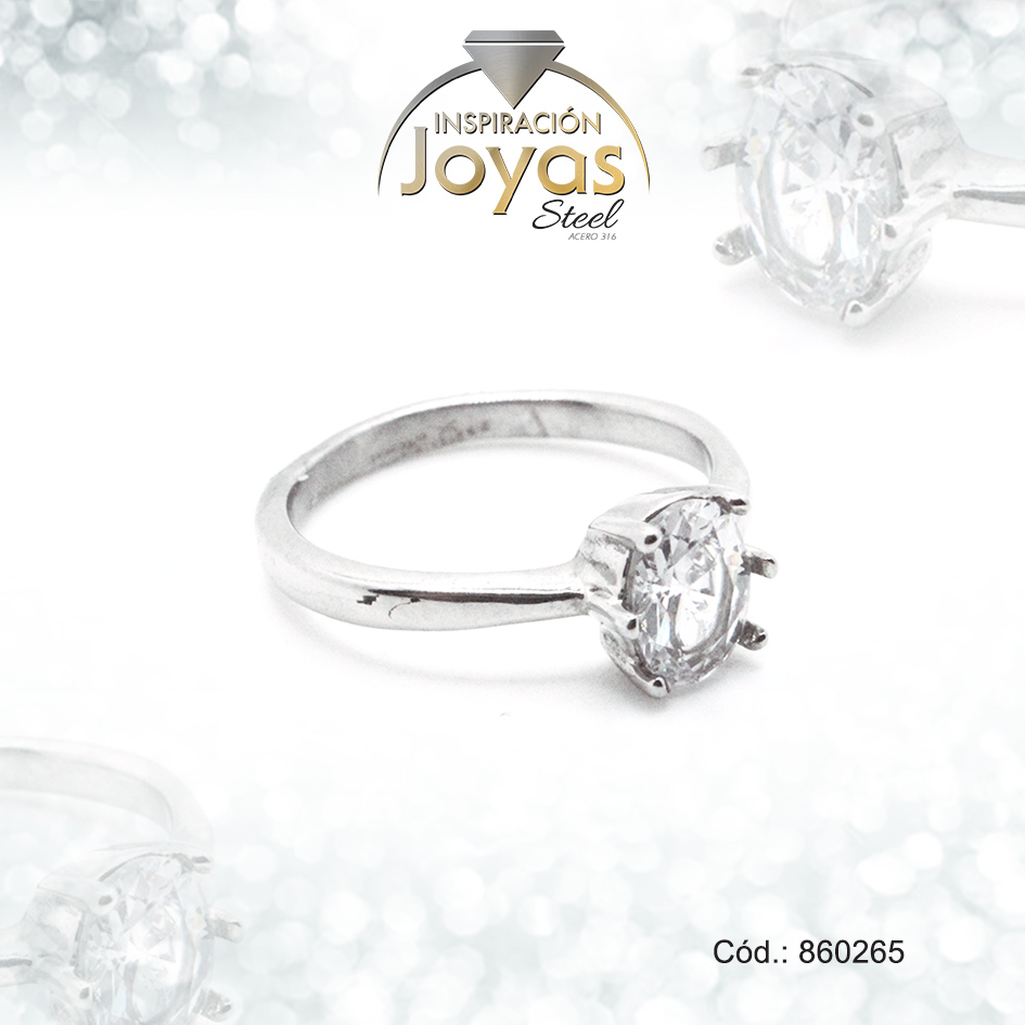 Anillo de Acero Solitario Circón Plateado Óvalo Talla 8 – 860265