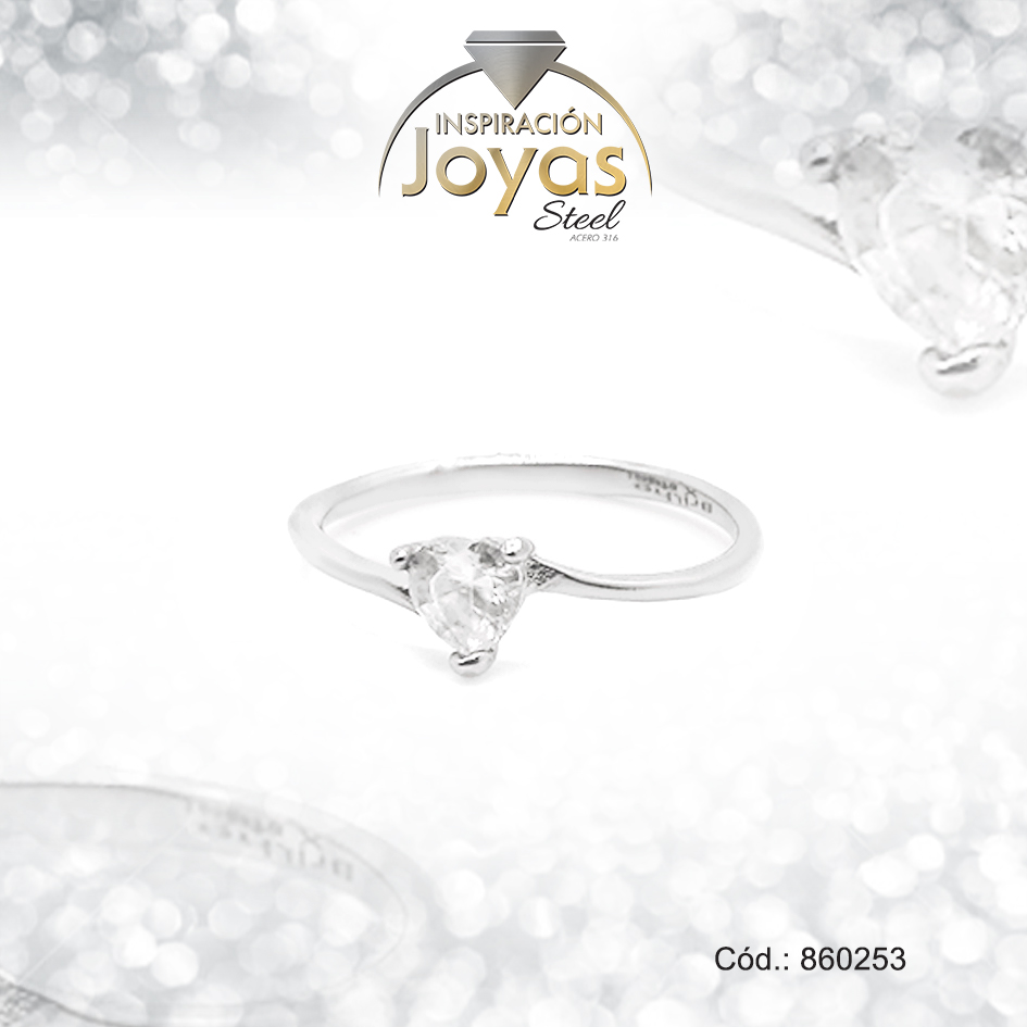 Anillo de Acero Solitario Circón Plateado Rombo Talla 8 – 860253