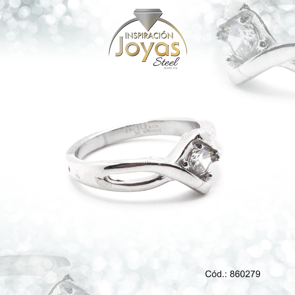 Anillo de Acero Solitario Circón Plateado Rombo Talla 9 – 860279