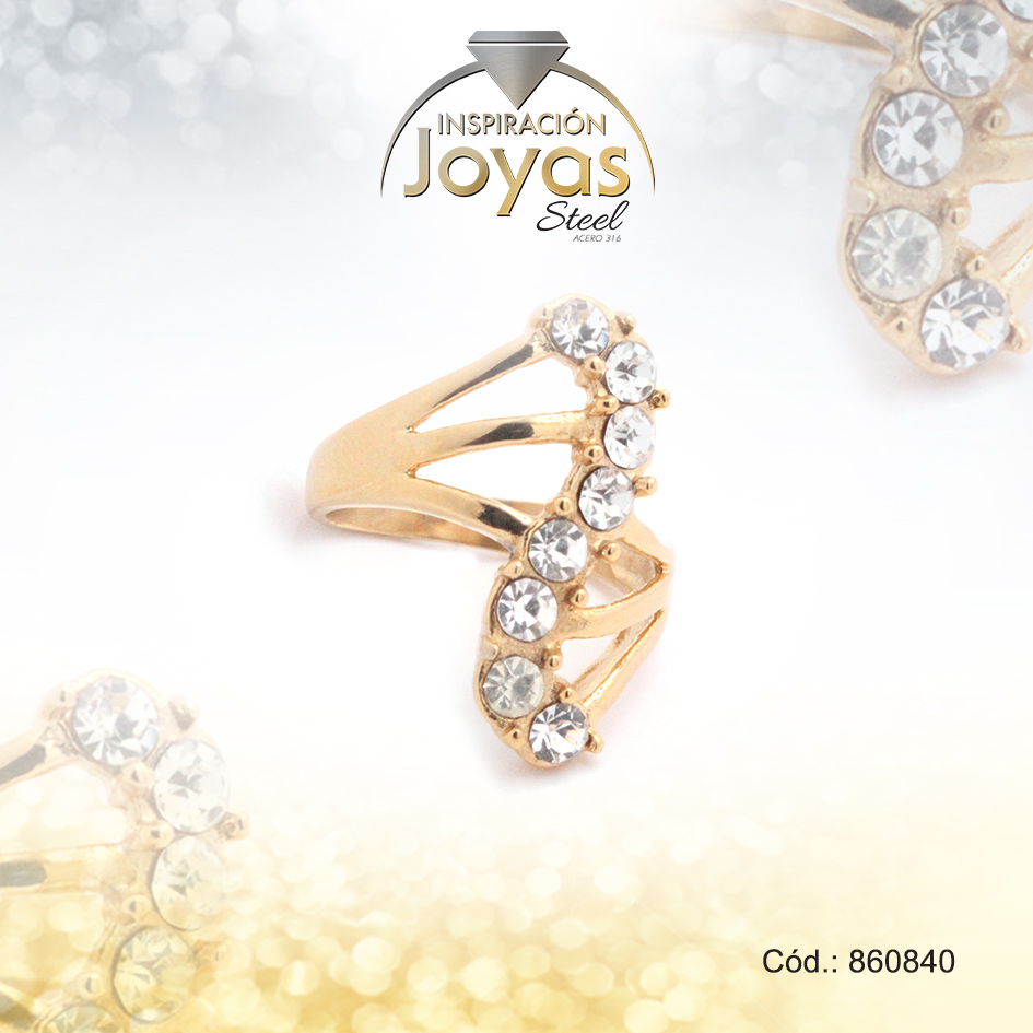 Anillo de Acero Variado Circón Dorado Múltiple Talla 7 – 860840