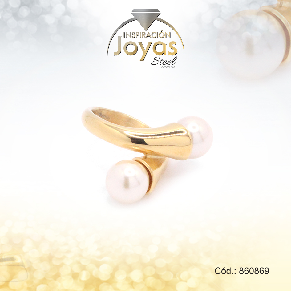 Anillo de Acero Variado Perla Dorado Esfera Talla 6 – 860869