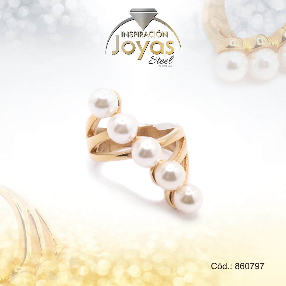 Anillo de Acero Variado Perla Dorado Múltiple Talla 6 – 860797