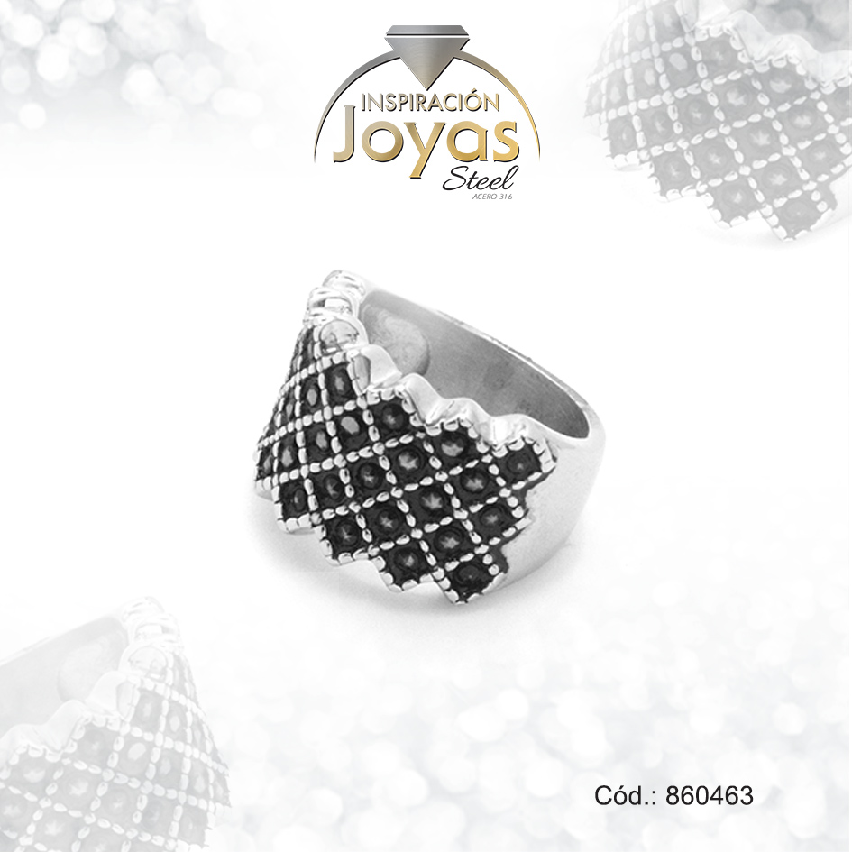 Anillo de Acero Variado Piedra Plateado Espinela Negro Talla 6 – 860463